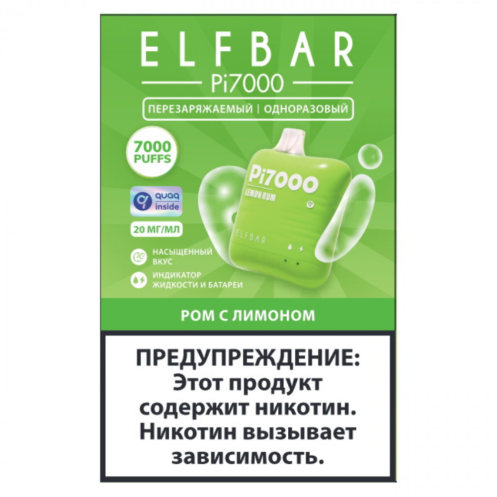 | Elf Bar видыPi 7000 | Elf Bar вкусыРом с Лимоном | Elf Bar количество в блоке10 шт |