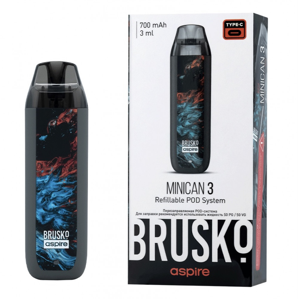 Перезаправляемая Под-Система Бруско Миникан 3 (Brusko Minican 3) 700 mah, Серый Флюид - купить в Артеме